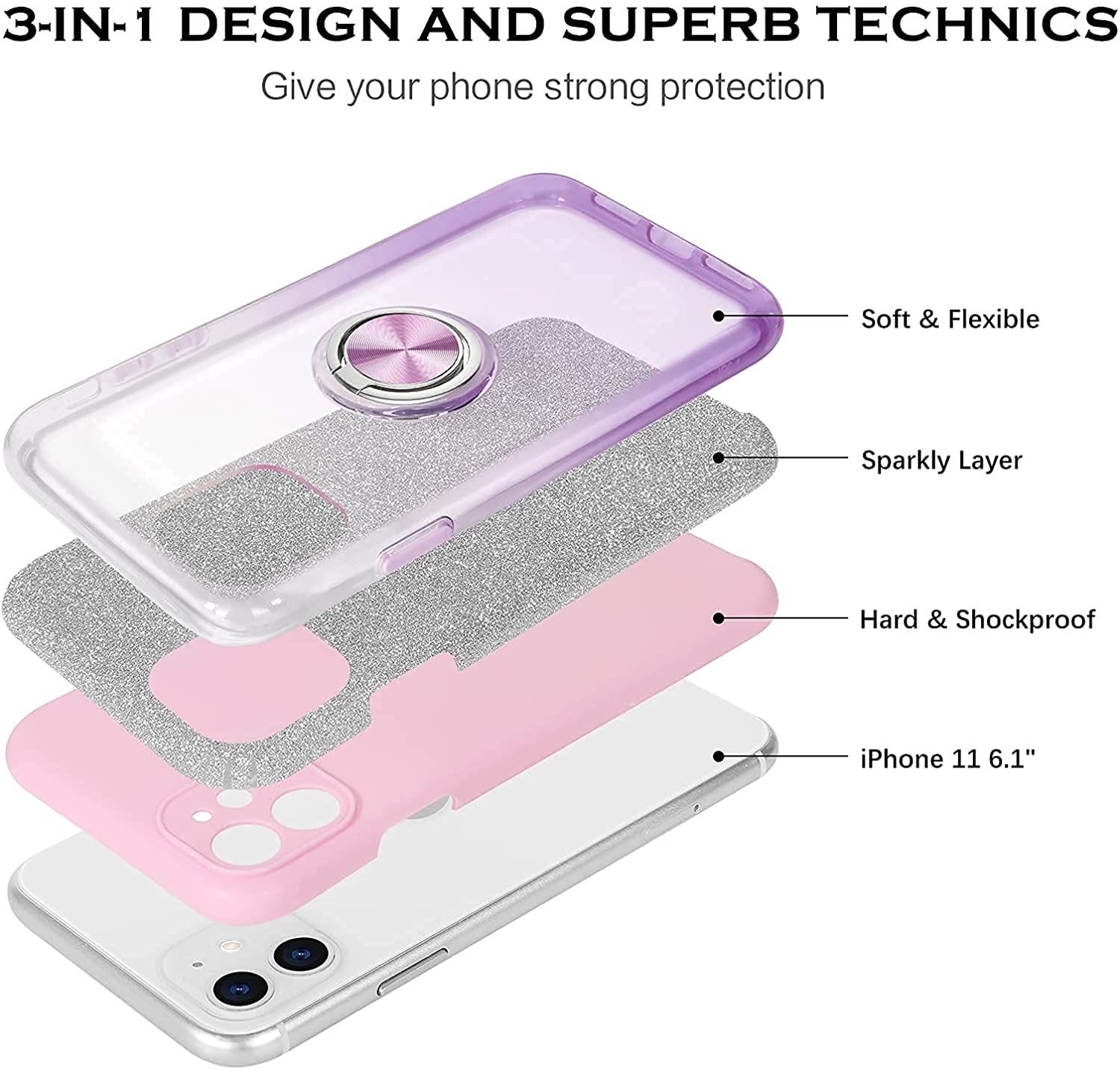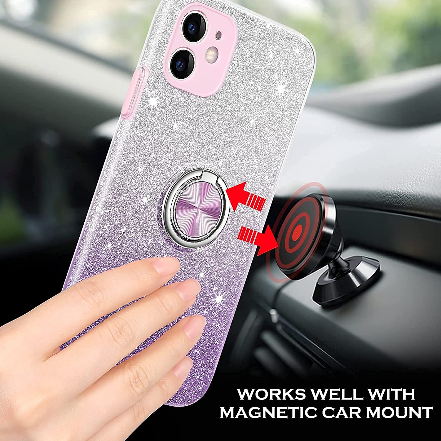 Compatible Phone Model: This glitter sparkly purple phone case is Compatible with 6.1 Inch iPhone 11 2019 released ONLY, NOT fit for any other phone models. 【Built-in 360° rotatable convenient ring holder, flexible kickstand and magnetic car mount supported.】